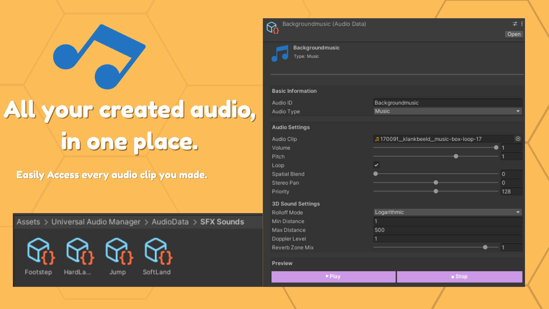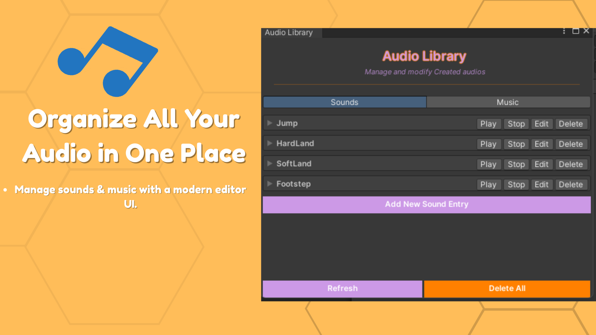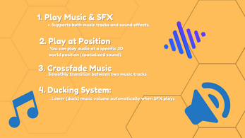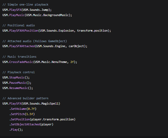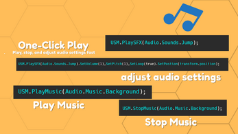 USM is a complete audio solution for Unity that helps you manage sound effects and music with ease. It’s designed to replace string-based sound calls with strongly typed constants, giving you safe, reliable, and fast audio playback.